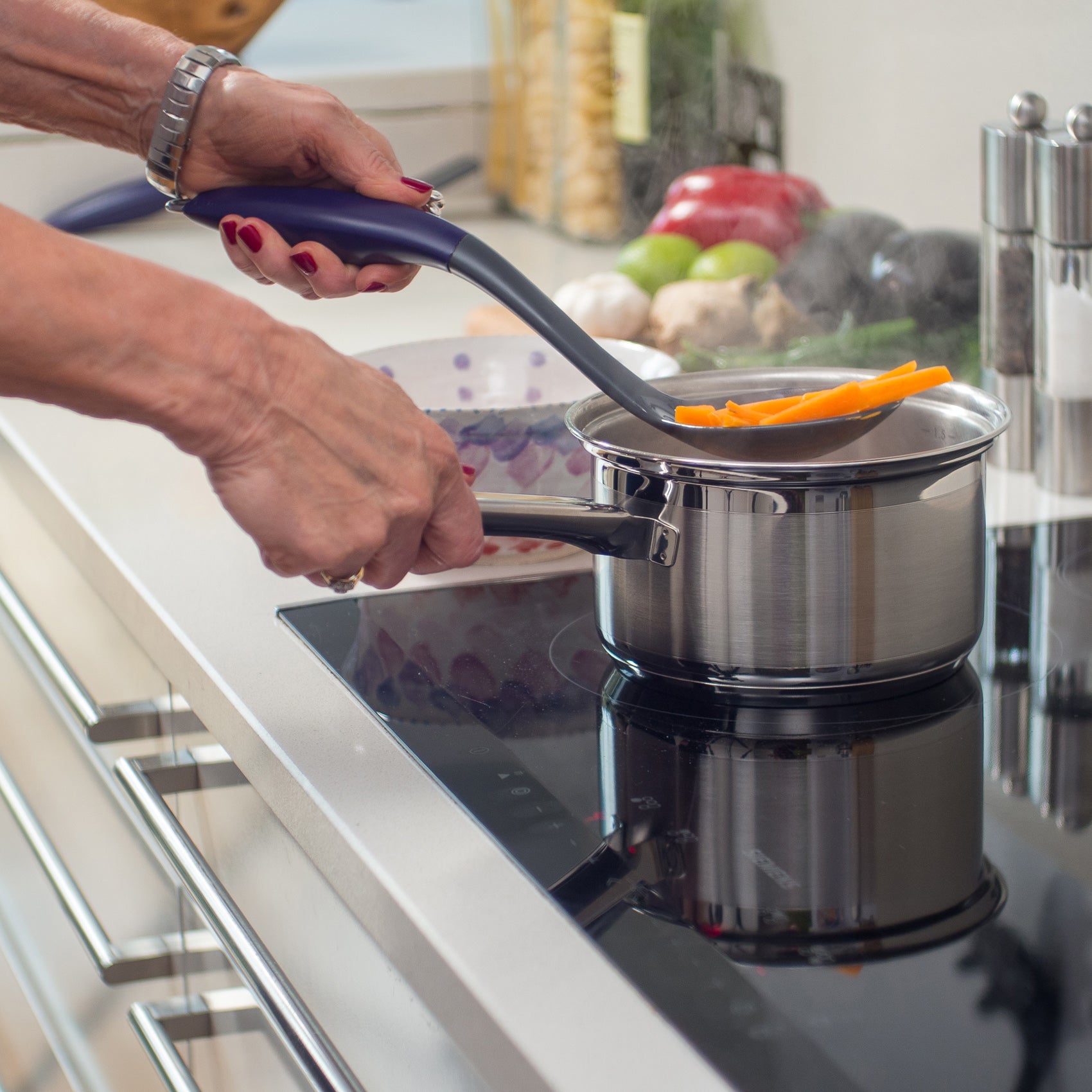 The angle, shape and size of the handle of all the utensils accommodates many different grip types so it can be used by a wide variety of people. The Eyra Kitchen Utensils allow the wrist to maintain a neutral position, so each utensil can be held securely in different ways without the need for a lot of grip strength. The utensils are made from a comfortable, anti-slip material.