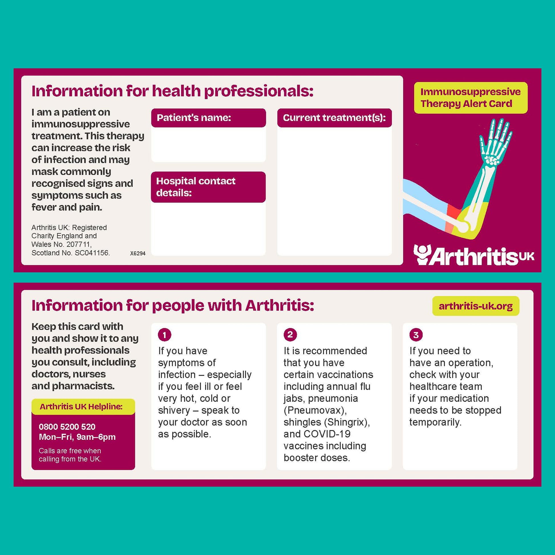 A handy wallet-sized card to remind patients on immunosuppressive medicines of the signs and symptoms that they should report to their healthcare team
