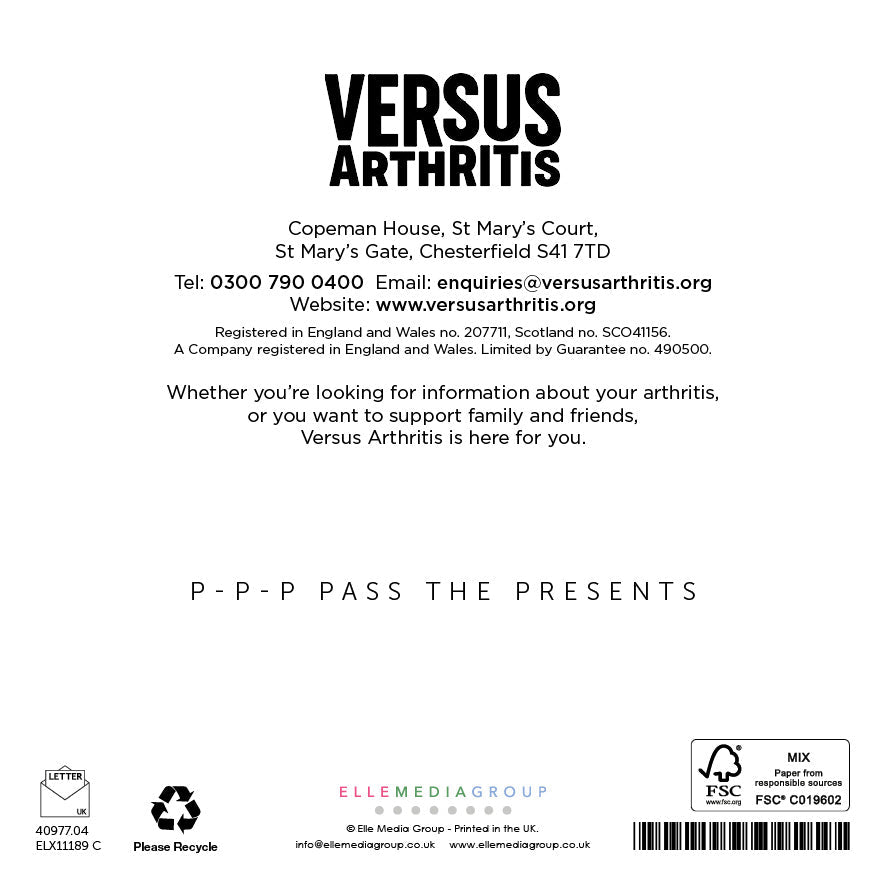 Each pack of cards you buy will help to fund life changing research and services for people with arthritis. Thank you.