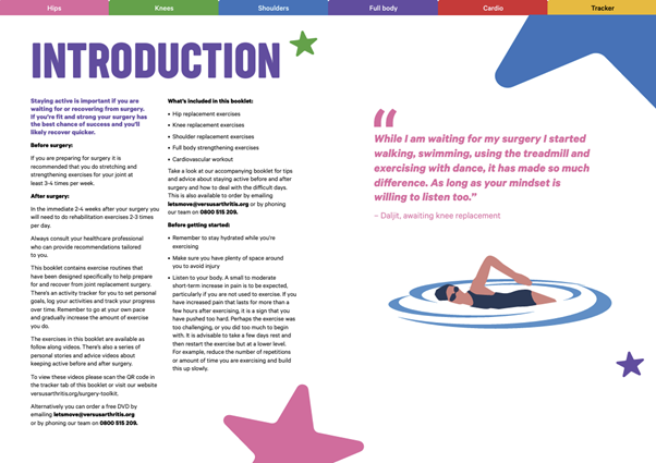 This booklet contains exercise routines that have been designed specifically to help prepare for and recover from joint replacement surgery.